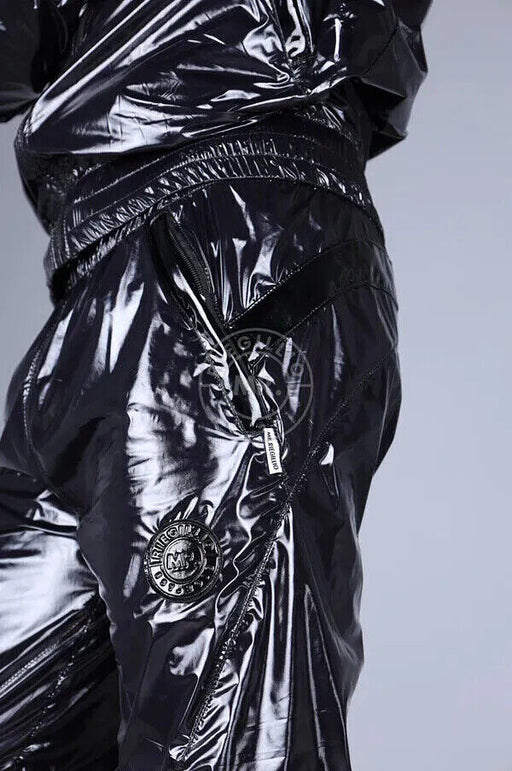 Afficher tous les détailsPantalon de survêtement MR. RIEGILLIO en PVC 24 noir brillant avec passepoil blanc R1044
