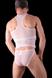 • A sexy see-through mini brief in stretch nylon for guys with nothing to hide!