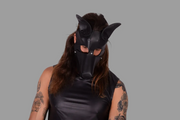 Ce masque en cuir de chien fait avec du cuir noir authentique ! Pour tous les types de visage et la taille universelle.