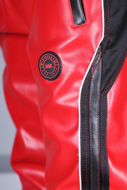MR. RIEGILLIO Vegan Leather Pants 24 Tracksuit Pant Red R1028