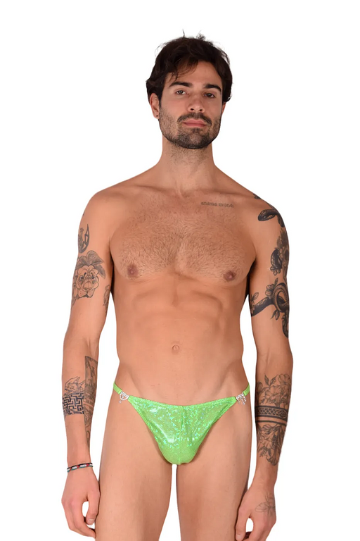 S/M SMU Thong Rhinestones Flashy Green MX10 100566