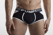 Fire up your engines with the PUMP! Access backless trunk. With soft sports mesh in front and ribbed sides and back, this hybrid underwear fits like a typical trunk, while the backless rear offers the playfulness, freedom and added sex appeal of a jockstrap. This trunk is guaranteed to heat things up, for whatever the occasion.