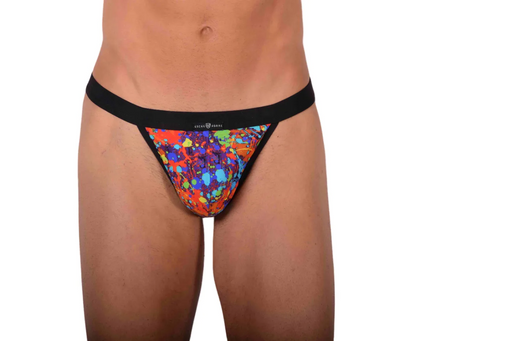 MEDIUM Gregg Homme Swimwear Thong Flamed Swim Tangas Paint Splatter 153204 142