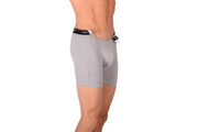 Elastic cotton boxer with a waistband designed especially for ostomy patients.
