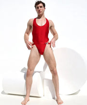 RUFSKIN Swimwear BASILE Swim-Brief Bodysuit Singlet Chrome Buckle Crimson Red B8