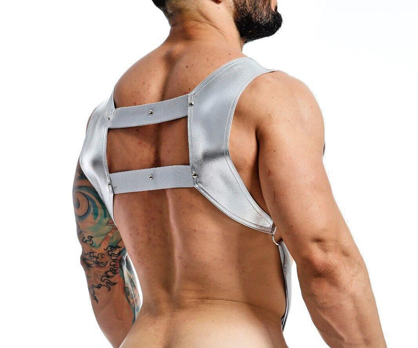 MOB DNGEON Crop Top Harnais avec C-Ring Cuir Synthétique Miroir Argent DMBL08