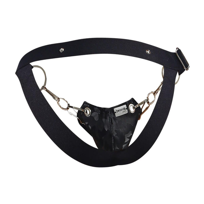 MOB DNGEON Lingerie érotique Jock à pression Anneau métallique Cuir synthétique Noir-Camo Taille unique DMBL03-B01