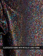 Made of elasticated knitted fabric with multicolor lurex yarns