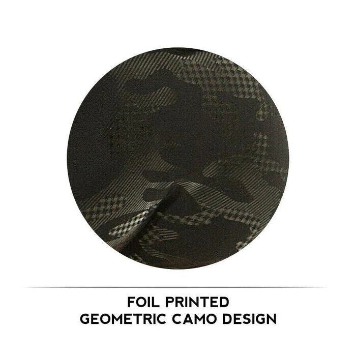 The special hand designed by Modus Vivendi printed fabric uses glossy foil with a geometrical camouflage design, that comes from the merge of stripped and houndstooth pattern.