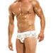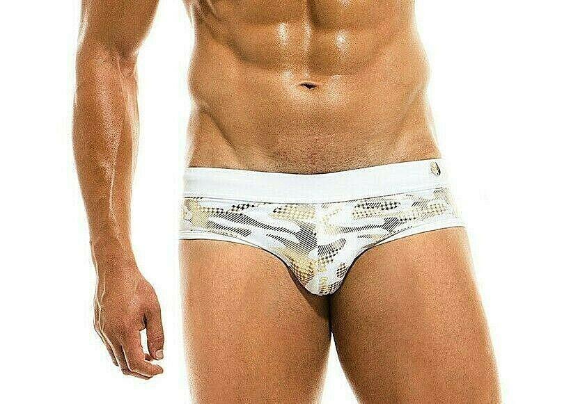 This design features a wide form fitting brief with a discreet Modus Vivendi logo on the waistband in the form of a snap. Available in black, white, and white/gold, these briefs have a classy and aesthetic look that works great for beach parties or glamping